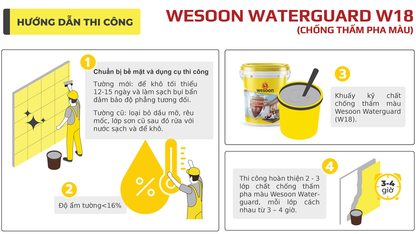 Lưu ý thi công sơn chống thấm màu Wesoon Waterguard (W18)