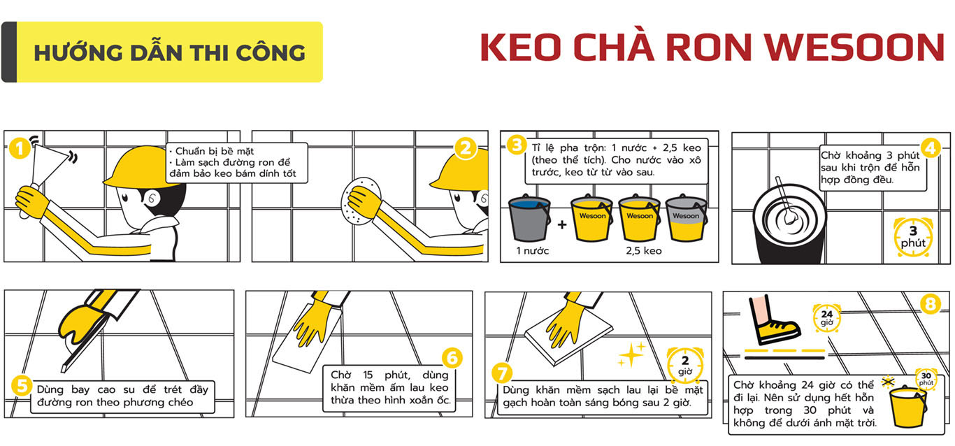 Không Pha trộn keo chà ron Wesoon với xi măng.